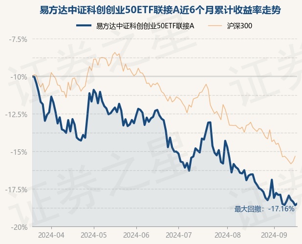 证券之星消息,9月19日,易方达中证科创创业50ETF联接A最新单位净值为0.4972元,累计净值为0.4972元,较前一交易日上涨0.26%。历史数据显示该基金近1个月下跌4.48%,近3个月下跌12.37%,近6个月下跌16.94%,近1年下跌18.6%。该基金近6个月的累计收益率走势如下图: