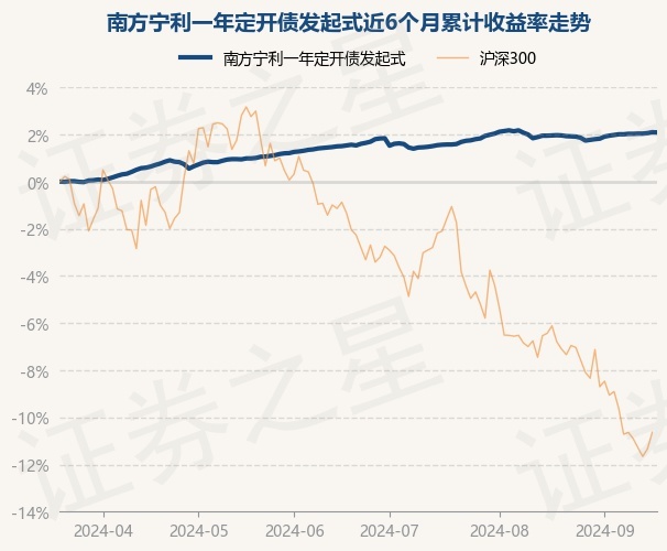 证券之星消息,9月19日,南方宁利一年定开债发起式最新单位净值为1.0365元,累计净值为1.165元,较前一交易日下跌0.01%。历史数据显示该基金近1个月上涨0.12%,近3个月上涨0.54%,近6个月上涨2.09%,近1年上涨4.84%。该基金近6个月的累计收益率走势如下图: