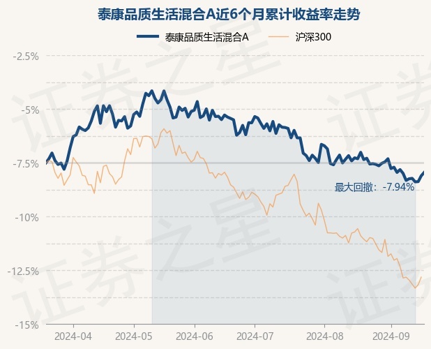 证券之星消息,9月19日,泰康品质生活混合A最新单位净值为1.043元,累计净值为1.043元,较前一交易日上涨0.33%。历史数据显示该基金近1个月下跌1.84%,近3个月下跌4.93%,近6个月下跌0.88%,近1年下跌2.31%。该基金近6个月的累计收益率走势如下图: