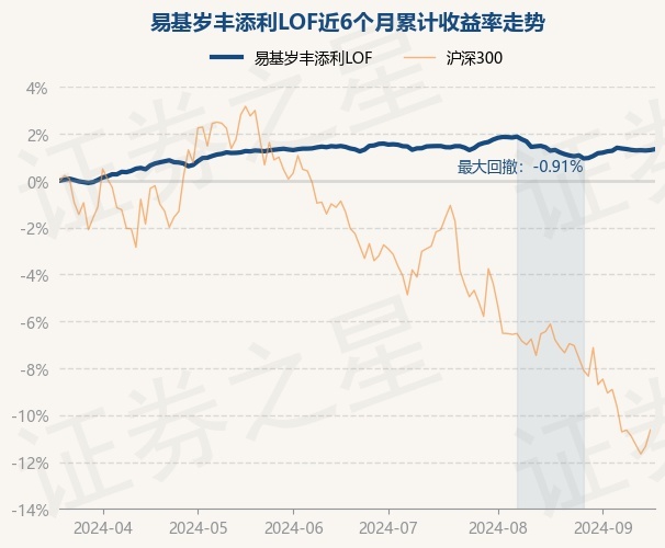 证券之星消息,9月19日,易基岁丰添利LOF最新单位净值为1.6467元,累计净值为2.5577元,较前一交易日上涨0.04%。历史数据显示该基金近1个月上涨0.03%,近3个月下跌0.1%,近6个月上涨1.34%,近1年上涨3.65%。该基金近6个月的累计收益率走势如下图: