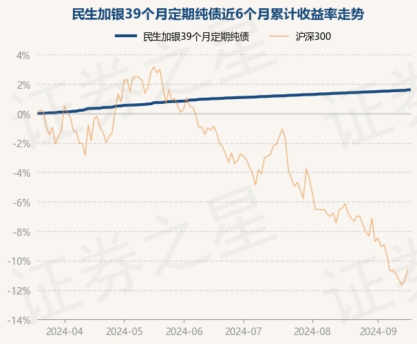 证券之星消息,9月19日,民生加银39个月定期纯债最新单位净值为1.0197元,累计净值为1.1304元,较前一交易日上涨0.0%。历史数据显示该基金近1个月上涨0.2%,近3个月上涨0.59%,近6个月上涨1.6%,近1年上涨2.72%。该基金近6个月的累计收益率走势如下图: