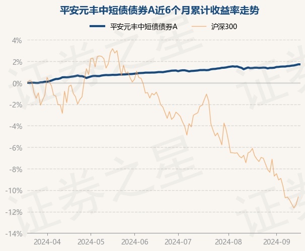 证券之星消息,9月19日,平安元丰中短债债券A最新单位净值为1.1048元,累计净值为1.1448元,较前一交易日上涨0.0%。历史数据显示该基金近1个月上涨0.31%,近3个月上涨0.71%,近6个月上涨1.71%,近1年上涨4.02%。该基金近6个月的累计收益率走势如下图: