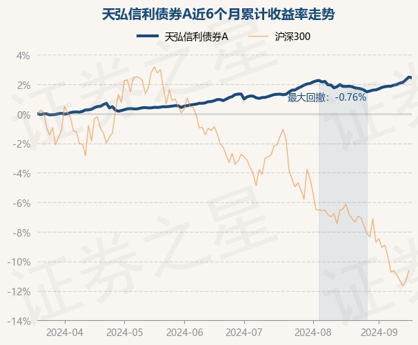 证券之星消息,9月19日,天弘信利债券A最新单位净值为1.0577元,累计净值为1.3228元,较前一交易日下跌0.04%。历史数据显示该基金近1个月上涨0.57%,近3个月上涨1.47%,近6个月上涨2.44%,近1年上涨5.15%。该基金近6个月的累计收益率走势如下图: