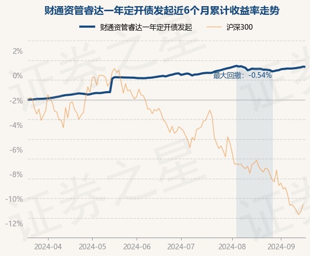 证券之星消息,9月19日,财通资管睿达一年定开债发起最新单位净值为1.0356元,累计净值为1.1038元,较前一交易日下跌0.02%。历史数据显示该基金近1个月上涨0.19%,近3个月上涨0.93%,近6个月上涨3.34%,近1年上涨5.71%。该基金近6个月的累计收益率走势如下图: