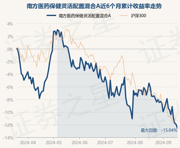 证券之星消息,9月19日,南方医药保健灵活配置混合A最新单位净值为1.8507元,累计净值为2.0657元,较前一交易日下跌0.67%。历史数据显示该基金近1个月下跌6.88%,近3个月下跌9.25%,近6个月下跌12.5%,近1年下跌13.88%。该基金近6个月的累计收益率走势如下图: