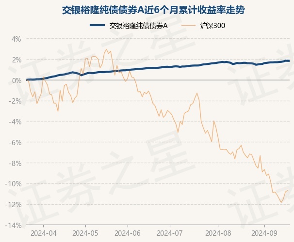 证券之星消息,9月20日,交银裕隆纯债债券A最新单位净值为1.3799元,累计净值为1.4089元,较前一交易日下跌0.01%。历史数据显示该基金近1个月上涨0.18%,近3个月上涨0.66%,近6个月上涨1.82%,近1年上涨4.45%。该基金近6个月的累计收益率走势如下图: