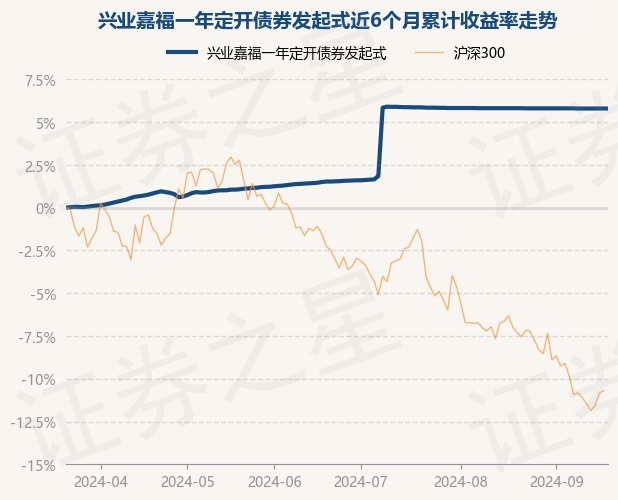 证券之星消息,9月20日,兴业嘉福一年定开债券发起式最新单位净值为1.0665元,累计净值为1.1651元,较前一交易日上涨0.0%。历史数据显示该基金近1个月下跌0.02%,近3个月上涨4.2%,近6个月上涨5.79%,近1年上涨8.22%。该基金近6个月的累计收益率走势如下图: