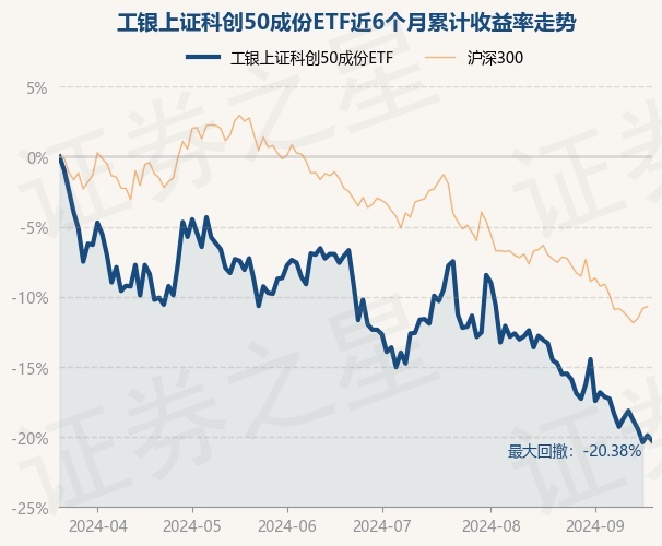证券之星消息,9月20日,工银上证科创50成份ETF最新单位净值为0.6683元,累计净值为0.4657元,较前一交易日下跌0.48%。历史数据显示该基金近1个月下跌6.73%,近3个月下跌14.19%,近6个月下跌20.27%,近1年下跌25.19%。该基金近6个月的累计收益率走势如下图: