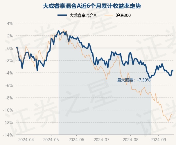 证券之星消息,9月20日,大成睿享混合A最新单位净值为1.3156元,累计净值为1.5299元,较前一交易日下跌0.09%。历史数据显示该基金近1个月上涨0.14%,近3个月下跌3.04%,近6个月下跌3.71%,近1年下跌4.46%。该基金近6个月的累计收益率走势如下图: