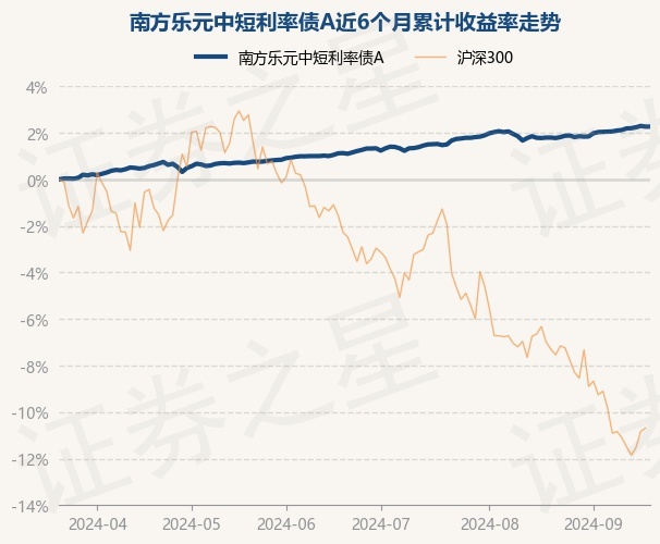 证券之星消息,9月20日,南方乐元中短利率债A最新单位净值为1.0427元,累计净值为1.1277元,较前一交易日上涨0.0%。历史数据显示该基金近1个月上涨0.49%,近3个月上涨1.15%,近6个月上涨2.29%,近1年上涨4.13%。该基金近6个月的累计收益率走势如下图: