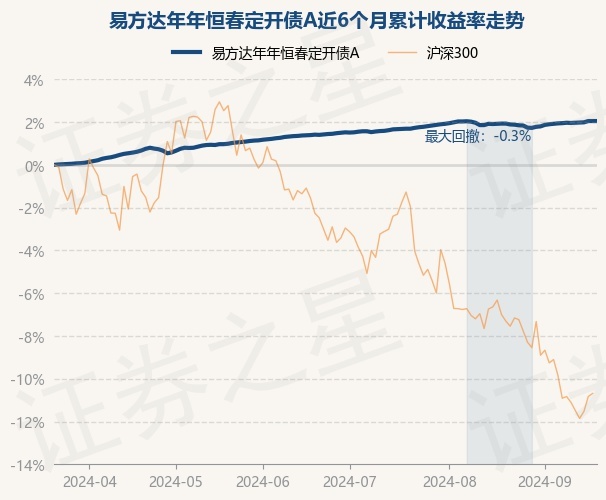 证券之星消息,9月20日,易方达年年恒春定开债A最新单位净值为1.0235元,累计净值为1.14元,较前一交易日上涨0.0%。历史数据显示该基金近1个月上涨0.1%,近3个月上涨0.61%,近6个月上涨2.03%,近1年上涨4.38%。该基金近6个月的累计收益率走势如下图: