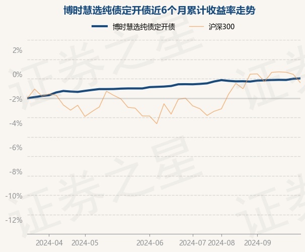 证券之星消息,9月20日,博时慧选纯债定开债最新单位净值为1.0463元,累计净值为1.2856元,较前一交易日上涨0.04%。历史数据显示该基金近1个月上涨0.3%,近3个月上涨0.83%,近6个月上涨2.04%,近1年上涨3.98%。该基金近6个月的累计收益率走势如下图:
