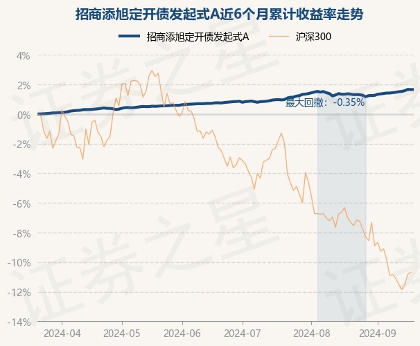 证券之星消息,9月20日,招商添旭定开债发起式A最新单位净值为1.0308元,累计净值为1.1784元,较前一交易日上涨0.0%。历史数据显示该基金近1个月上涨0.3%,近3个月上涨0.89%,近6个月上涨1.66%,近1年上涨2.84%。该基金近6个月的累计收益率走势如下图: