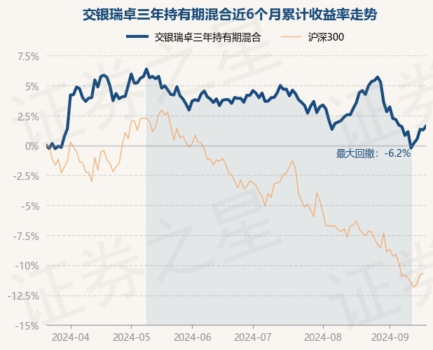 证券之星消息,9月20日,交银瑞卓三年持有期混合最新单位净值为0.8536元,累计净值为0.8536元,较前一交易日上涨0.34%。历史数据显示该基金近1个月下跌2.81%,近3个月下跌2.1%,近6个月上涨1.63%,近1年下跌2.19%。该基金近6个月的累计收益率走势如下图: