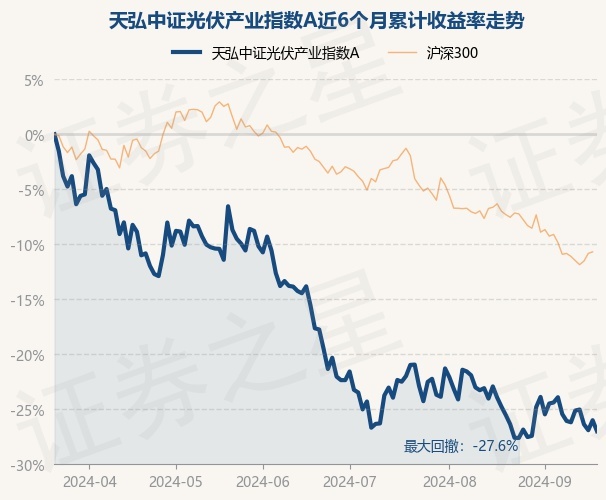 证券之星消息,9月20日,天弘中证光伏产业指数A最新单位净值为0.5488元,累计净值为0.5488元,较前一交易日下跌1.35%。历史数据显示该基金近1个月下跌1.96%,近3个月下跌11.36%,近6个月下跌26.99%,近1年下跌32.76%。该基金近6个月的累计收益率走势如下图: