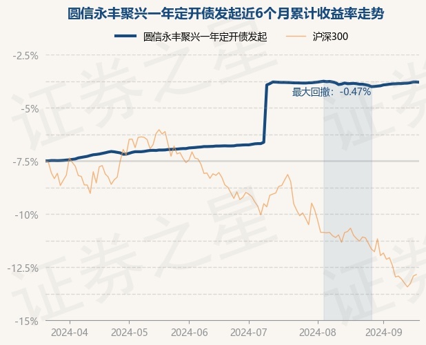 证券之星消息,9月20日,圆信永丰聚兴一年定开债发起最新单位净值为1.078元,累计净值为1.1319元,较前一交易日下跌0.02%。历史数据显示该基金近1个月上涨0.13%,近3个月上涨5.9%,近6个月上涨7.41%,近1年上涨9.7%。该基金近6个月的累计收益率走势如下图:
