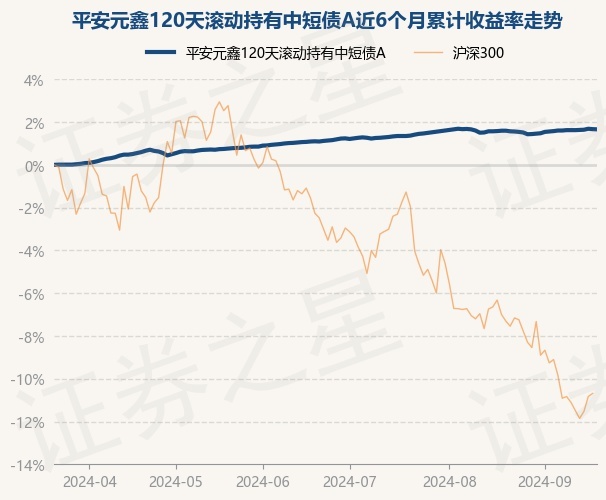 平安元鑫120天滚动持有中短债A为债券型-中短债基金,根据最新一期基金季报显示,该基金资产配置:无股票类资产,债券占净值比119.37%,现金占净值比0.24%。