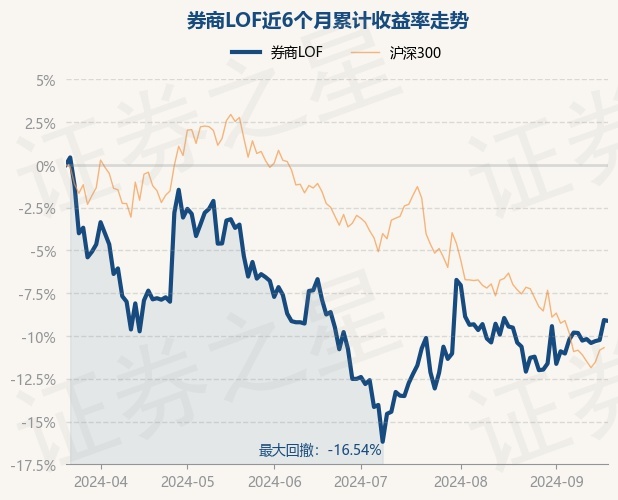 证券之星消息,9月20日,券商LOF最新单位净值为0.8406元,累计净值为0.5419元,较前一交易日下跌0.06%。历史数据显示该基金近1个月上涨1.41%,近3个月下跌0.41%,近6个月下跌9.12%,近1年下跌13.7%。该基金近6个月的累计收益率走势如下图: