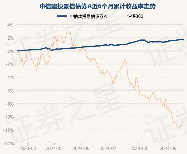 证券之星消息,9月20日,中信建投景信债券A最新单位净值为1.0295元,累计净值为1.0539元,较前一交易日上涨0.0%。历史数据显示该基金近1个月上涨0.35%,近3个月上涨0.98%,近6个月上涨1.73%,近1年上涨3.52%。该基金近6个月的累计收益率走势如下图: