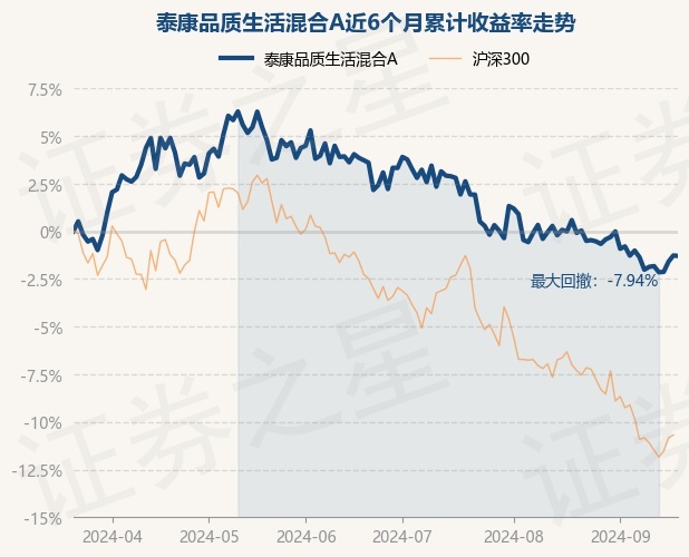 证券之星消息,9月20日,泰康品质生活混合A最新单位净值为1.0427元,累计净值为1.0427元,较前一交易日下跌0.03%。历史数据显示该基金近1个月下跌1.21%,近3个月下跌4.85%,近6个月下跌1.3%,近1年下跌2.0%。该基金近6个月的累计收益率走势如下图: