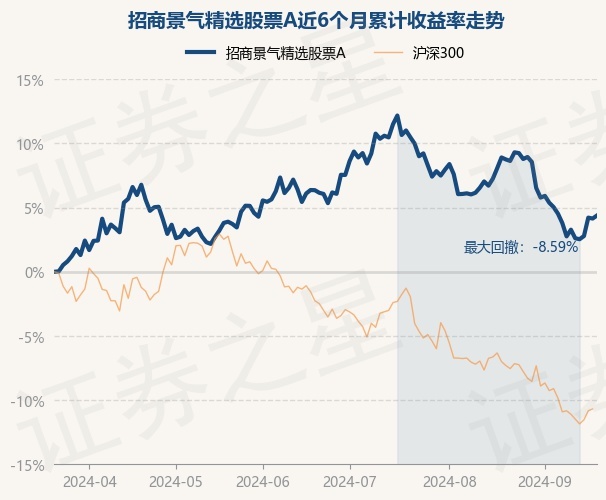 证券之星消息,9月20日,招商景气精选股票A最新单位净值为0.8882元,累计净值为0.8882元,较前一交易日上涨0.23%。历史数据显示该基金近1个月下跌4.02%,近3个月下跌1.86%,近6个月上涨4.38%,近1年上涨13.06%。该基金近6个月的累计收益率走势如下图: