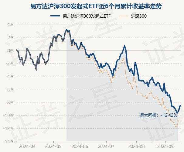 证券之星消息,9月20日,易方达沪深300发起式ETF最新单位净值为3.2021元,累计净值为1.6003元,较前一交易日上涨0.16%。历史数据显示该基金近1个月下跌3.75%,近3个月下跌7.04%,近6个月下跌8.45%,近1年下跌11.28%。该基金近6个月的累计收益率走势如下图: