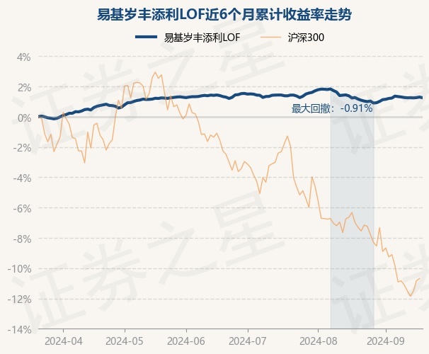 证券之星消息,9月20日,易基岁丰添利LOF最新单位净值为1.6459元,累计净值为2.5569元,较前一交易日下跌0.05%。历史数据显示该基金近1个月上涨0.09%,近3个月下跌0.08%,近6个月上涨1.25%,近1年上涨3.59%。该基金近6个月的累计收益率走势如下图: