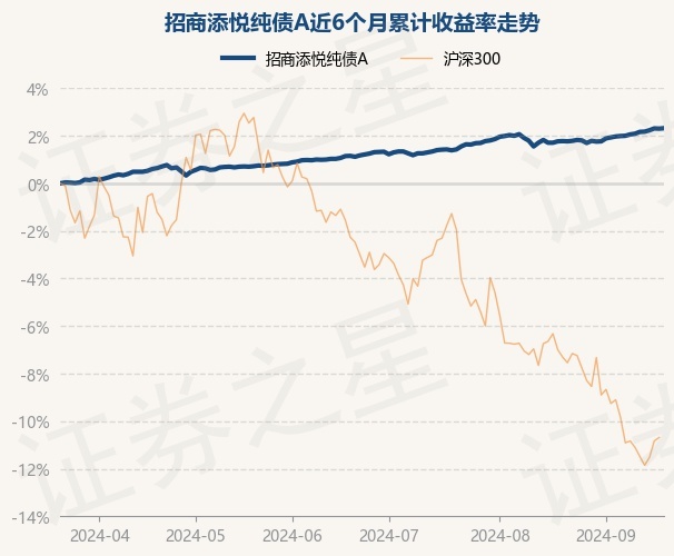 证券之星消息,9月20日,招商添悦纯债A最新单位净值为1.0557元,累计净值为1.2365元,较前一交易日上涨0.02%。历史数据显示该基金近1个月上涨0.53%,近3个月上涨1.15%,近6个月上涨2.32%,近1年上涨4.47%。该基金近6个月的累计收益率走势如下图: