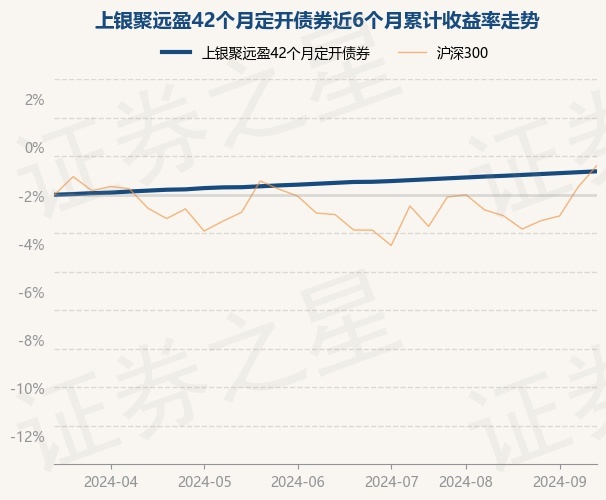 证券之星消息,9月20日,上银聚远盈42个月定开债券最新单位净值为1.0799元,累计净值为1.133元,较前一交易日上涨0.05%。历史数据显示该基金近1个月上涨1.16%,近3个月上涨1.58%,近6个月上涨2.15%,近1年上涨3.46%。该基金近6个月的累计收益率走势如下图:
