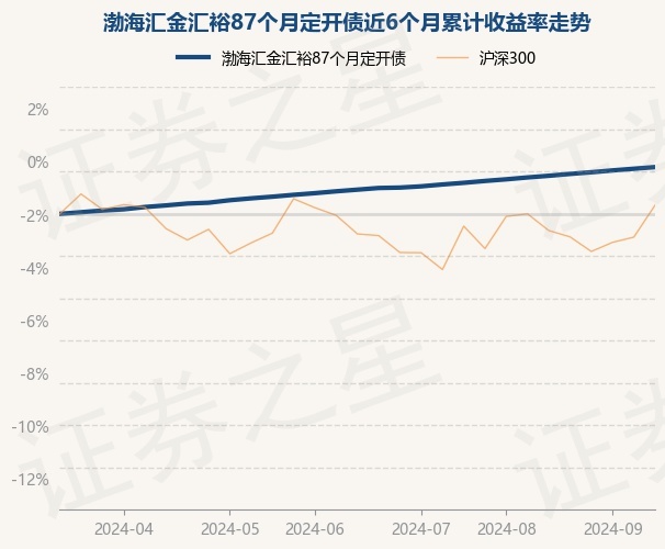 证券之星消息,9月20日,渤海汇金汇裕87个月定开债最新单位净值为1.0438元,累计净值为1.1593元,较前一交易日上涨0.08%。历史数据显示该基金近1个月上涨0.4%,近3个月上涨1.13%,近6个月上涨2.21%。该基金近6个月的累计收益率走势如下图: