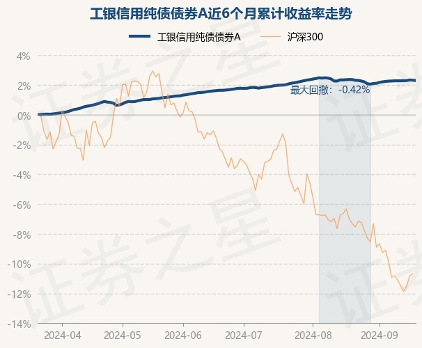证券之星消息,9月20日,工银信用纯债债券A最新单位净值为1.4598元,累计净值为1.5008元,较前一交易日下跌0.02%。历史数据显示该基金近1个月下跌0.06%,近3个月上涨0.65%,近6个月上涨2.3%,近1年上涨5.43%。该基金近6个月的累计收益率走势如下图: