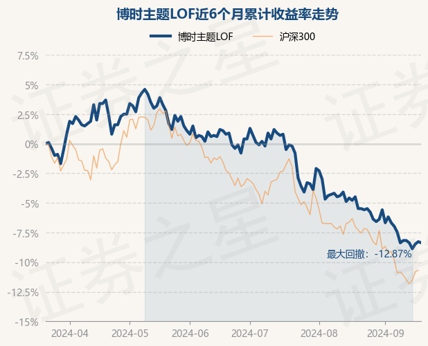 证券之星消息,9月20日,博时主题LOF最新单位净值为0.919元,累计净值为5.614元,较前一交易日下跌0.11%。历史数据显示该基金近1个月下跌3.06%,近3个月下跌9.1%,近6个月下跌8.37%,近1年下跌13.55%。该基金近6个月的累计收益率走势如下图: