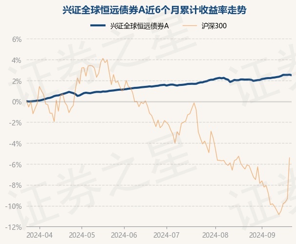 证券之星消息,9月23日,兴证全球恒远债券A最新单位净值为1.0349元,累计净值为1.0549元,较前一交易日上涨0.02%。历史数据显示该基金近1个月上涨0.46%,近3个月上涨2.11%,近6个月上涨2.55%,近1年上涨5.19%。该基金近6个月的累计收益率走势如下图: