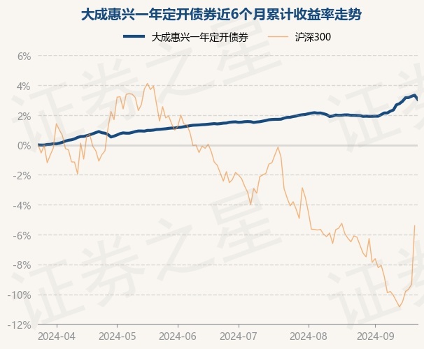证券之星消息,9月23日,大成惠兴一年定开债券最新单位净值为1.0422元,累计净值为1.1637元,较前一交易日上涨0.07%。历史数据显示该基金近1个月上涨1.33%,近3个月上涨1.9%,近6个月上涨3.33%,近1年上涨6.01%。该基金近6个月的累计收益率走势如下图: