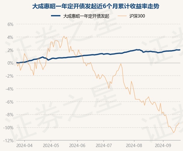 证券之星消息,9月23日,大成惠昭一年定开债发起最新单位净值为1.0417元,累计净值为1.0617元,较前一交易日上涨0.03%。历史数据显示该基金近1个月上涨0.33%,近3个月上涨0.77%,近6个月上涨2.0%,近1年上涨4.1%。该基金近6个月的累计收益率走势如下图: