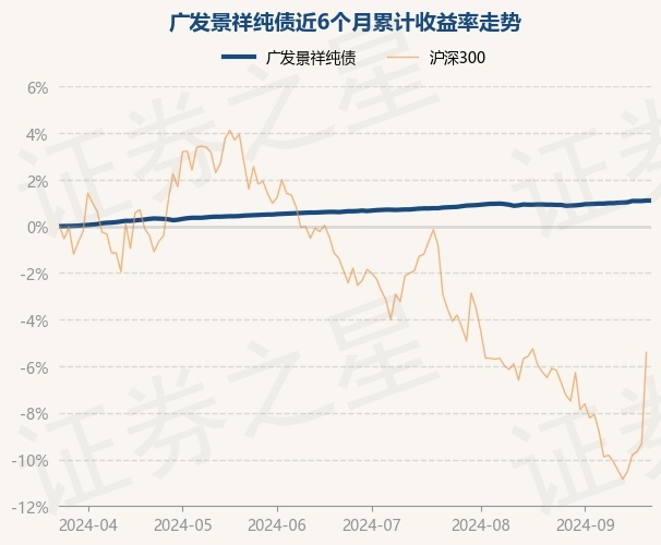 证券之星消息,9月23日,广发景祥纯债最新单位净值为1.0803元,累计净值为1.2456元,较前一交易日上涨0.02%。历史数据显示该基金近1个月上涨0.19%,近3个月上涨0.49%,近6个月上涨1.1%,近1年上涨2.44%。该基金近6个月的累计收益率走势如下图: