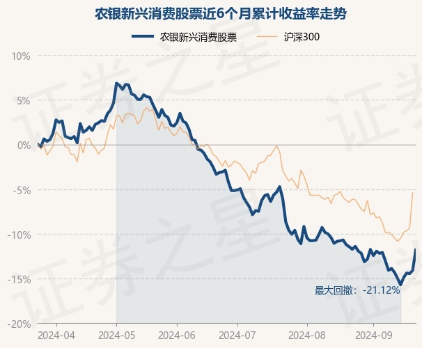 证券之星消息,9月23日,农银新兴消费股票最新单位净值为0.517元,累计净值为0.517元,较前一交易日上涨0.43%。历史数据显示该基金近1个月下跌3.04%,近3个月下跌11.12%,近6个月下跌14.09%,近1年下跌18.95%。该基金近6个月的累计收益率走势如下图: