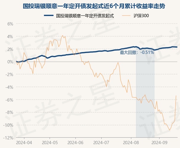 证券之星消息,9月23日,国投瑞银顺意一年定开债发起式最新单位净值为1.0193元,累计净值为1.0593元,较前一交易日上涨0.0%。历史数据显示该基金近1个月上涨0.29%,近3个月上涨0.78%,近6个月上涨2.29%,近1年上涨4.1%。该基金近6个月的累计收益率走势如下图: