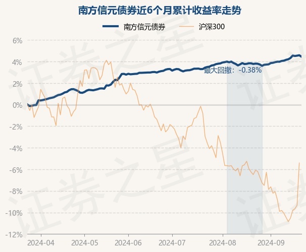 证券之星消息,9月23日,南方信元债券最新单位净值为1.0649元,累计净值为1.1111元,较前一交易日上涨0.04%。历史数据显示该基金近1个月上涨0.76%,近3个月上涨1.55%,近6个月上涨4.58%,近1年上涨7.0%。该基金近6个月的累计收益率走势如下图:
