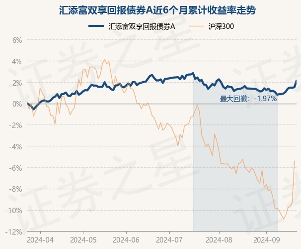 汇添富双享回报债券A为债券型-混合二级基金,根据最新一期基金季报显示,该基金资产配置:股票占净值比19.8%,债券占净值比104.99%,现金占净值比1.33%。基金十大重仓股如下: