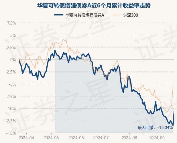 证券之星消息,9月23日,华夏可转债增强债券A最新单位净值为1.0378元,累计净值为1.0378元,较前一交易日下跌0.57%。历史数据显示该基金近1个月下跌2.65%,近3个月下跌12.99%,近6个月下跌13.49%,近1年下跌19.11%。该基金近6个月的累计收益率走势如下图: