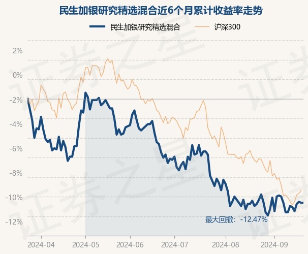 证券之星消息,9月23日,民生加银研究精选混合最新单位净值为0.833元,累计净值为1.147元,较前一交易日上涨0.0%。历史数据显示该基金近1个月下跌0.95%,近3个月下跌6.3%,近6个月下跌10.62%,近1年下跌25.02%。该基金近6个月的累计收益率走势如下图:
