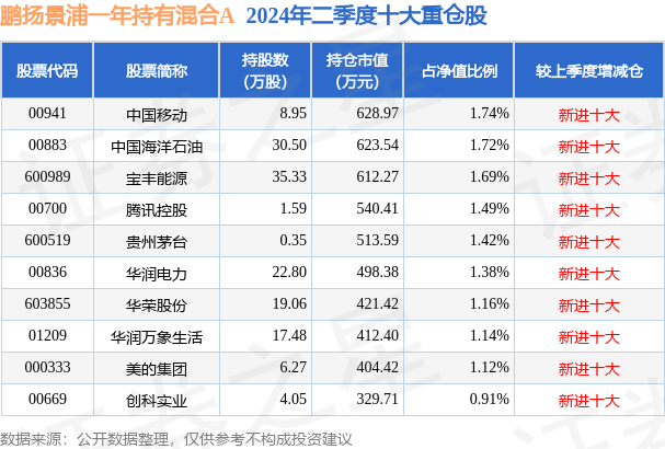 鹏扬景浦一年持有混合A为混合型-偏债基金,根据最新一期基金季报显示,该基金资产配置:股票占净值比23.14%,债券占净值比109.72%,现金占净值比3.69%。基金十大重仓股如下: