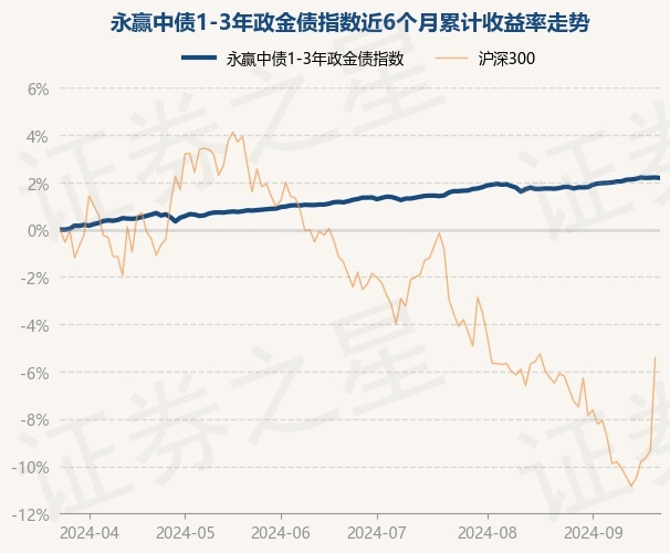 证券之星消息,9月23日,永赢中债1-3年政金债指数最新单位净值为1.072元,累计净值为1.185元,较前一交易日上涨0.01%。历史数据显示该基金近1个月上涨0.39%,近3个月上涨1.04%,近6个月上涨2.2%,近1年上涨4.2%。该基金近6个月的累计收益率走势如下图: