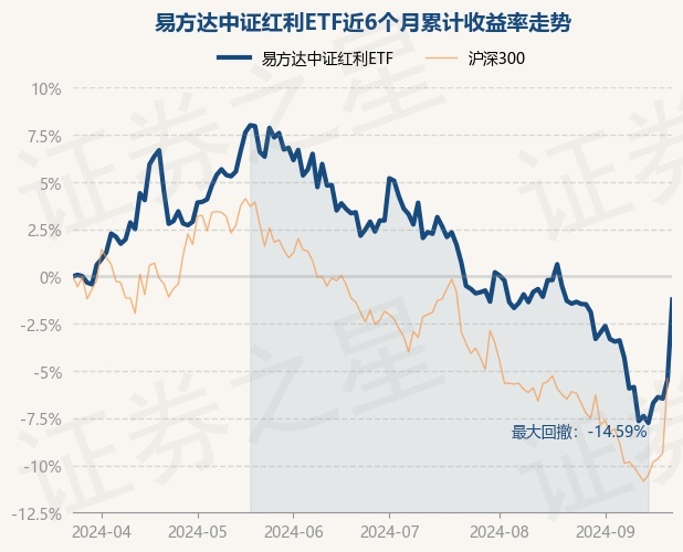 证券之星消息,9月23日,易方达中证红利ETF最新单位净值为1.2448元,累计净值为1.4528元,较前一交易日上涨1.06%。历史数据显示该基金近1个月下跌4.19%,近3个月下跌8.58%,近6个月下跌5.48%,近1年下跌3.74%。该基金近6个月的累计收益率走势如下图: