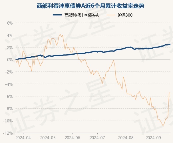 证券之星消息,9月23日,西部利得沣享债券A最新单位净值为1.0457元,累计净值为1.0757元,较前一交易日上涨0.03%。历史数据显示该基金近1个月上涨0.61%,近3个月上涨1.33%,近6个月上涨2.43%,近1年上涨4.99%。该基金近6个月的累计收益率走势如下图: