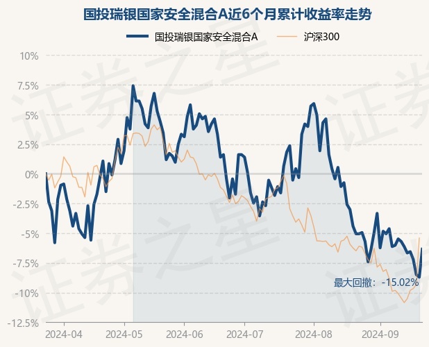证券之星消息,9月24日,国投瑞银国家安全混合A最新单位净值为0.871元,累计净值为1.03元,较前一交易日上涨2.59%。历史数据显示该基金近1个月下跌1.47%,近3个月下跌5.94%,近6个月下跌6.34%,近1年下跌16.81%。该基金近6个月的累计收益率走势如下图: