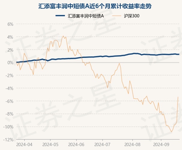 证券之星消息,9月24日,汇添富丰润中短债A最新单位净值为1.0825元,累计净值为1.1955元,较前一交易日上涨0.01%。历史数据显示该基金近1个月上涨0.08%,近3个月上涨0.4%,近6个月上涨1.24%,近1年上涨4.78%。该基金近6个月的累计收益率走势如下图: