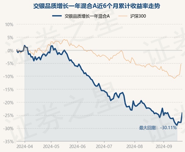 证券之星消息,9月24日,交银品质增长一年混合A最新单位净值为0.5925元,累计净值为0.5925元,较前一交易日上涨5.0%。历史数据显示该基金近1个月上涨0.0%,近3个月下跌11.97%,近6个月下跌24.17%,近1年下跌34.25%。该基金近6个月的累计收益率走势如下图: