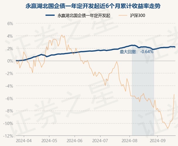 证券之星消息,9月24日,永赢湖北国企债一年定开发起最新单位净值为1.0533元,累计净值为1.0686元,较前一交易日下跌0.07%。历史数据显示该基金近1个月上涨0.1%,近3个月上涨0.62%,近6个月上涨2.16%,近1年上涨6.61%。该基金近6个月的累计收益率走势如下图:
